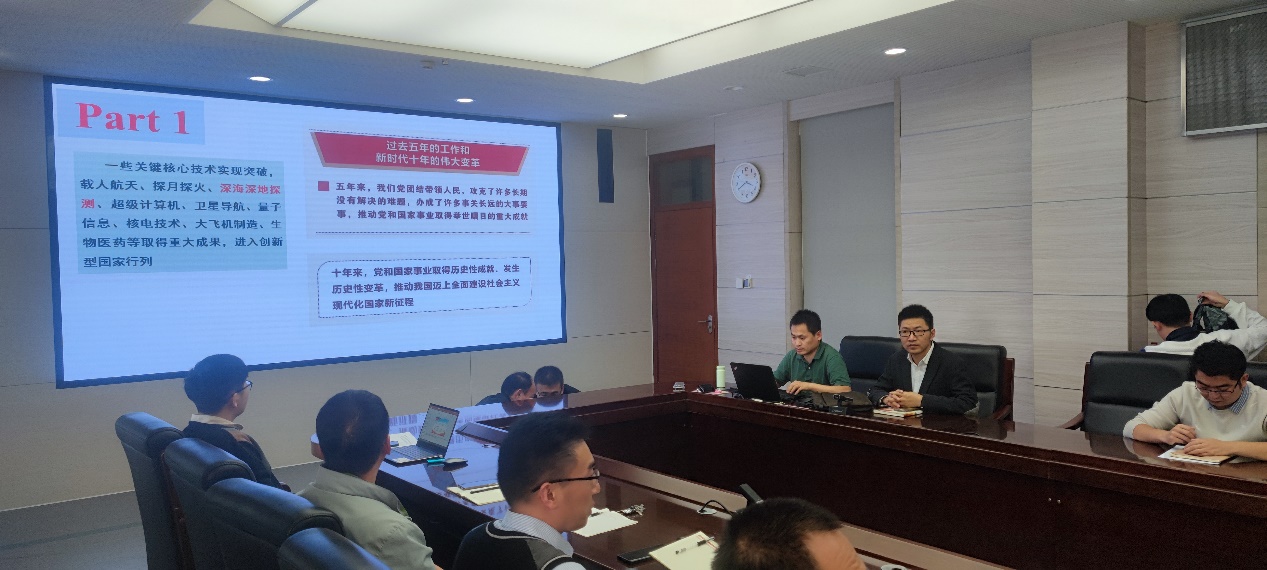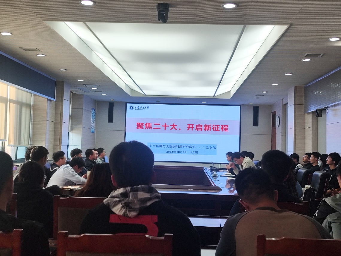 安全监测与大数据利用研究所第二党支部在矿业科学中心A412会议室组织党员干部进行学习讨论,畅谈收听收看党的二十大开幕盛况的心得体会。会议以“聚焦二十大、开启新征程”为主题,与会党员系统分析讨论了习近平总书记代表十九届中央委员会向大会作的报告内容,在交流环节中纷纷表达了对党的二十大胜利召开的感悟和思考。
