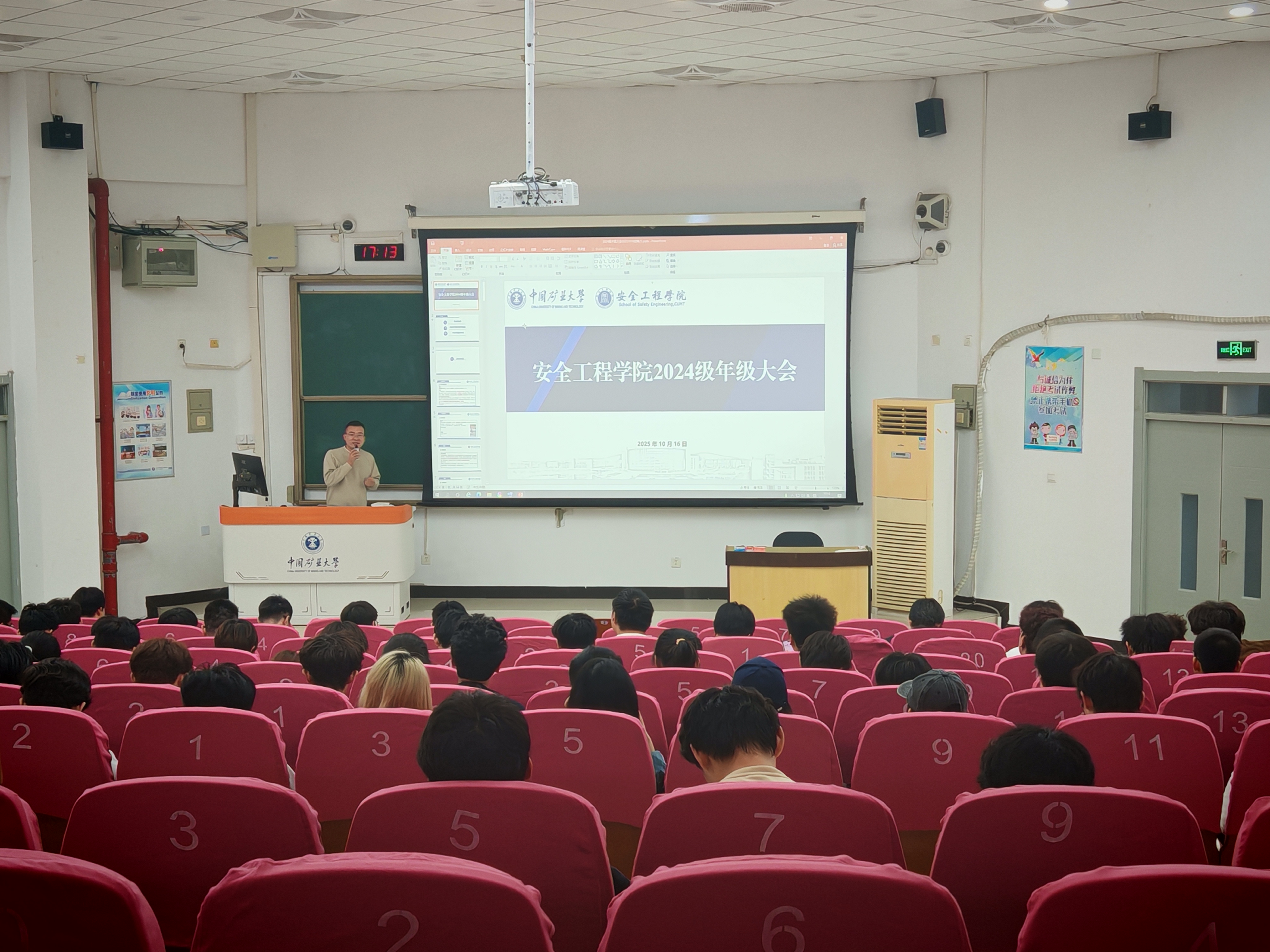 于博2-C302教室组织召开2025-2026学年第一次年级大会。会议由辅导员胥振主持,2024级全体学生参加。