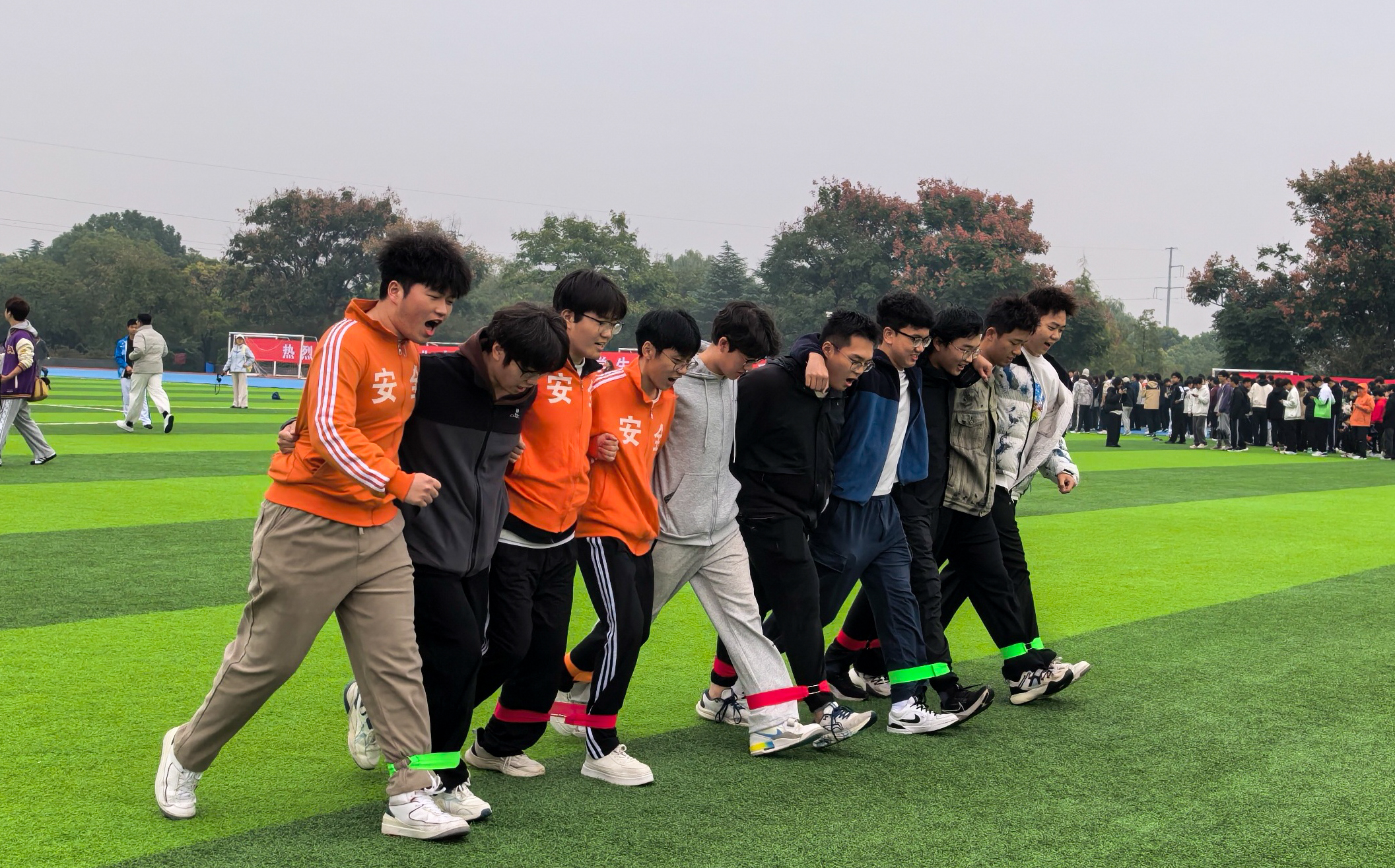 学子仍以饱满的热情投入各项赛事,在雨后的赛场上展现出良好的竞技状态和团队精神。