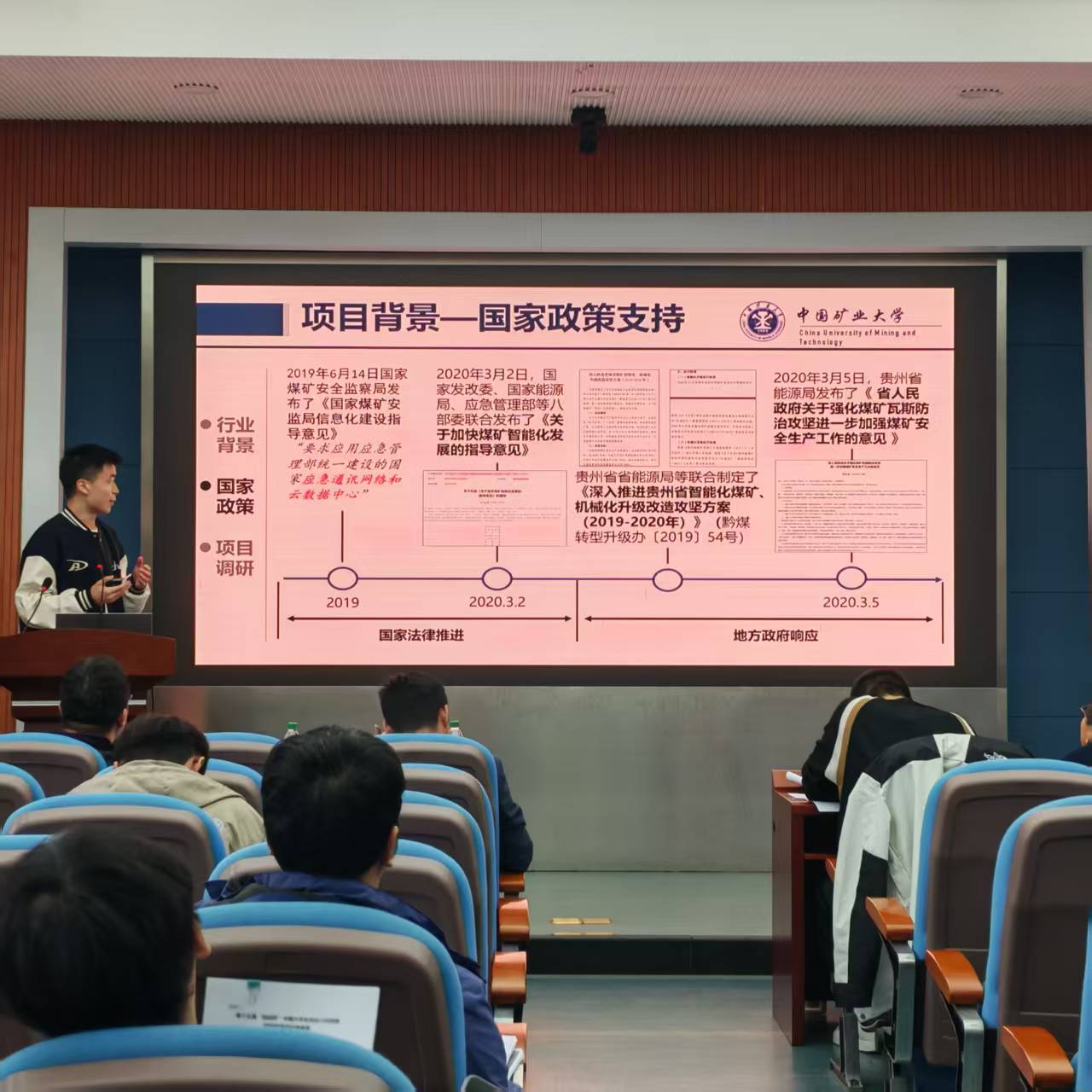 在矿业科学中心A200举办第十五届“挑战杯”中国大学生创业计划竞赛院内选拔评审会。本次评审会邀请朱金佗教授、彭敏教授、王青祥教授、王金鑫教授及胥振老师、贺瀚老师担任评委。