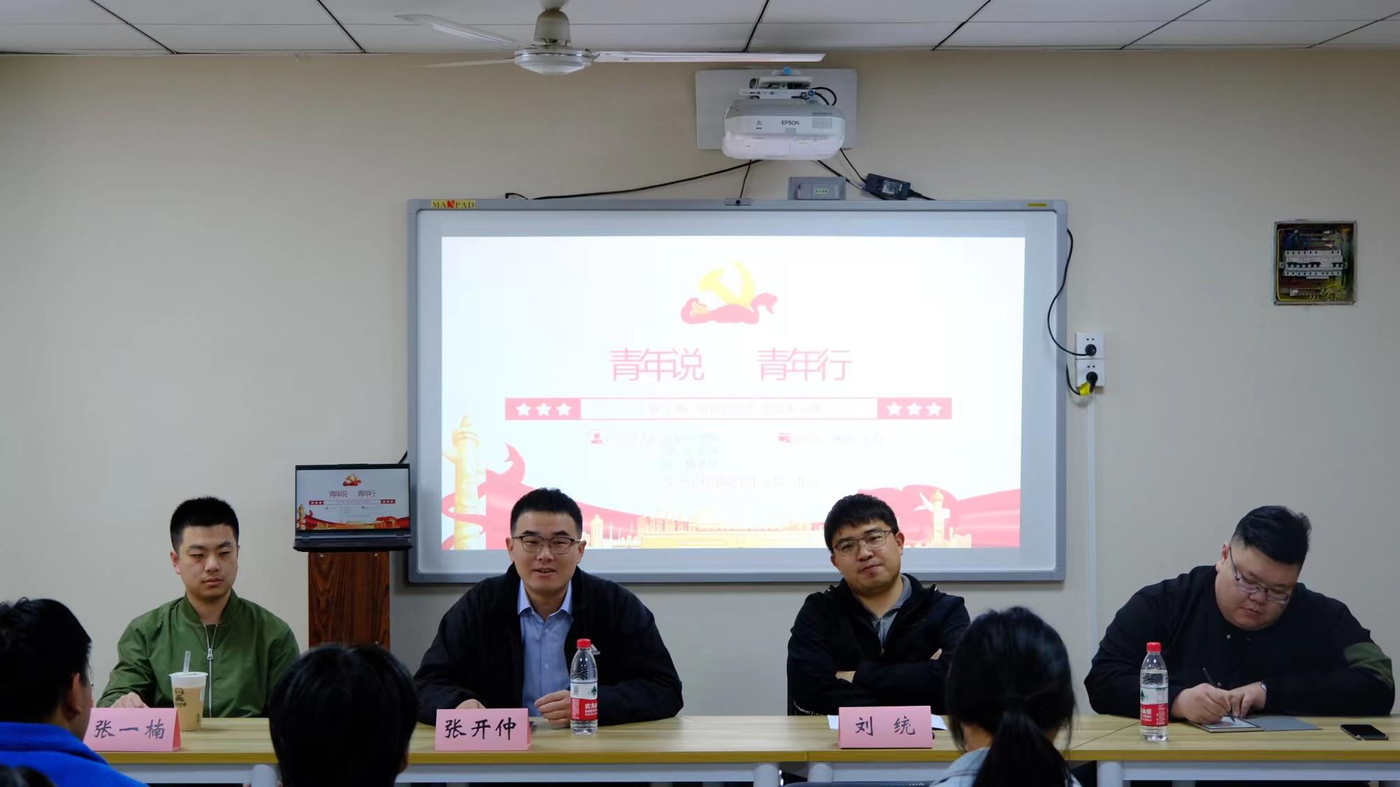 优秀青年教师张开仲、张一楠、刘统受邀担任主讲。学工办主任刘世通及2021级优秀学生代表参加本次交流会。
