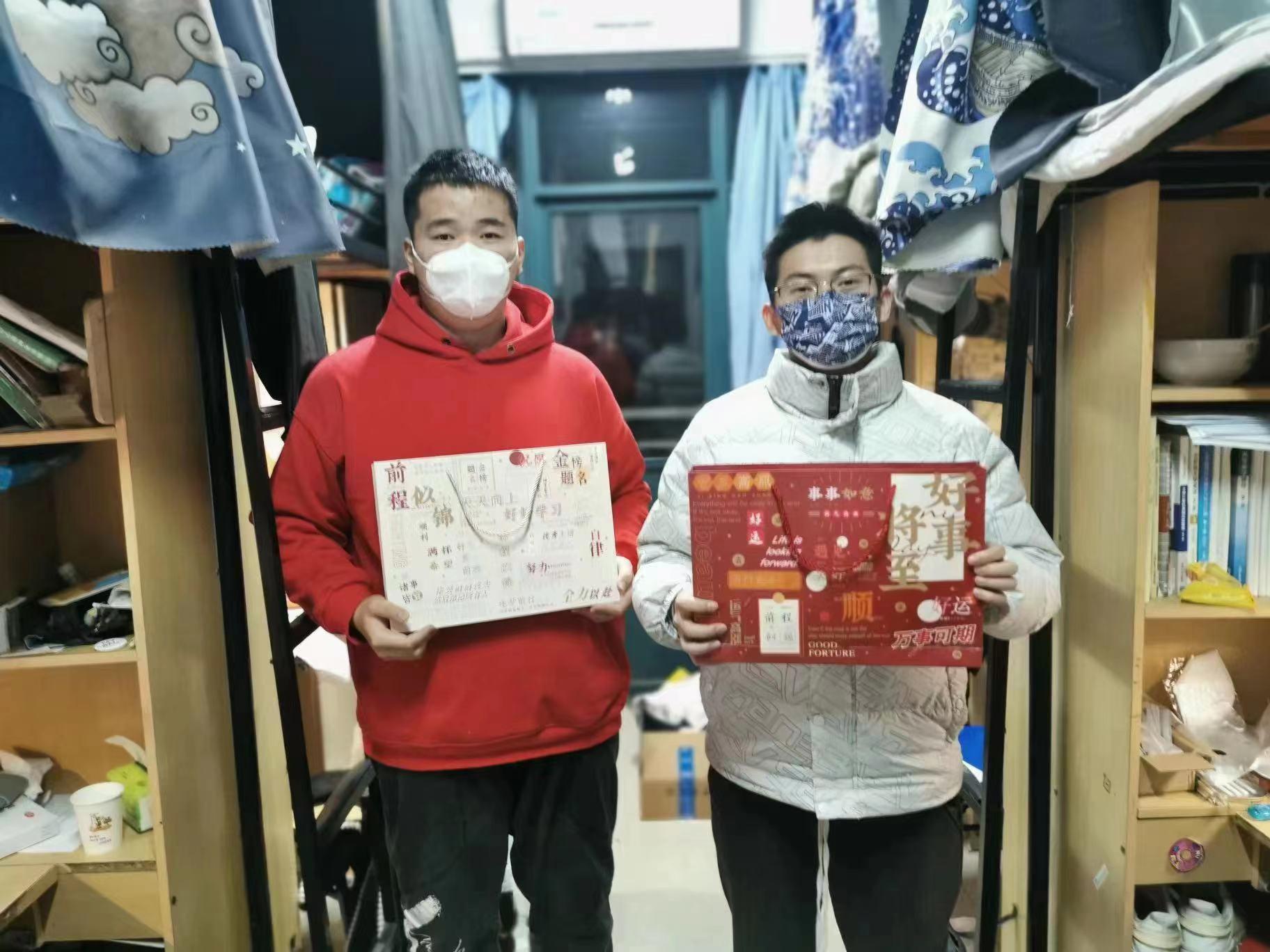 深入学生宿舍为2019级考研学生送去祝福和礼物。