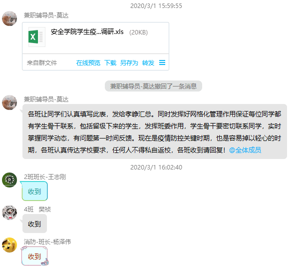 会后辅导员通过打电话等方式进一步强调网格化的重要性和注意事项,做好动员,利用网格化管理掌握学生的动态,把学校的关心和要求一对一地传达给每一个学生。