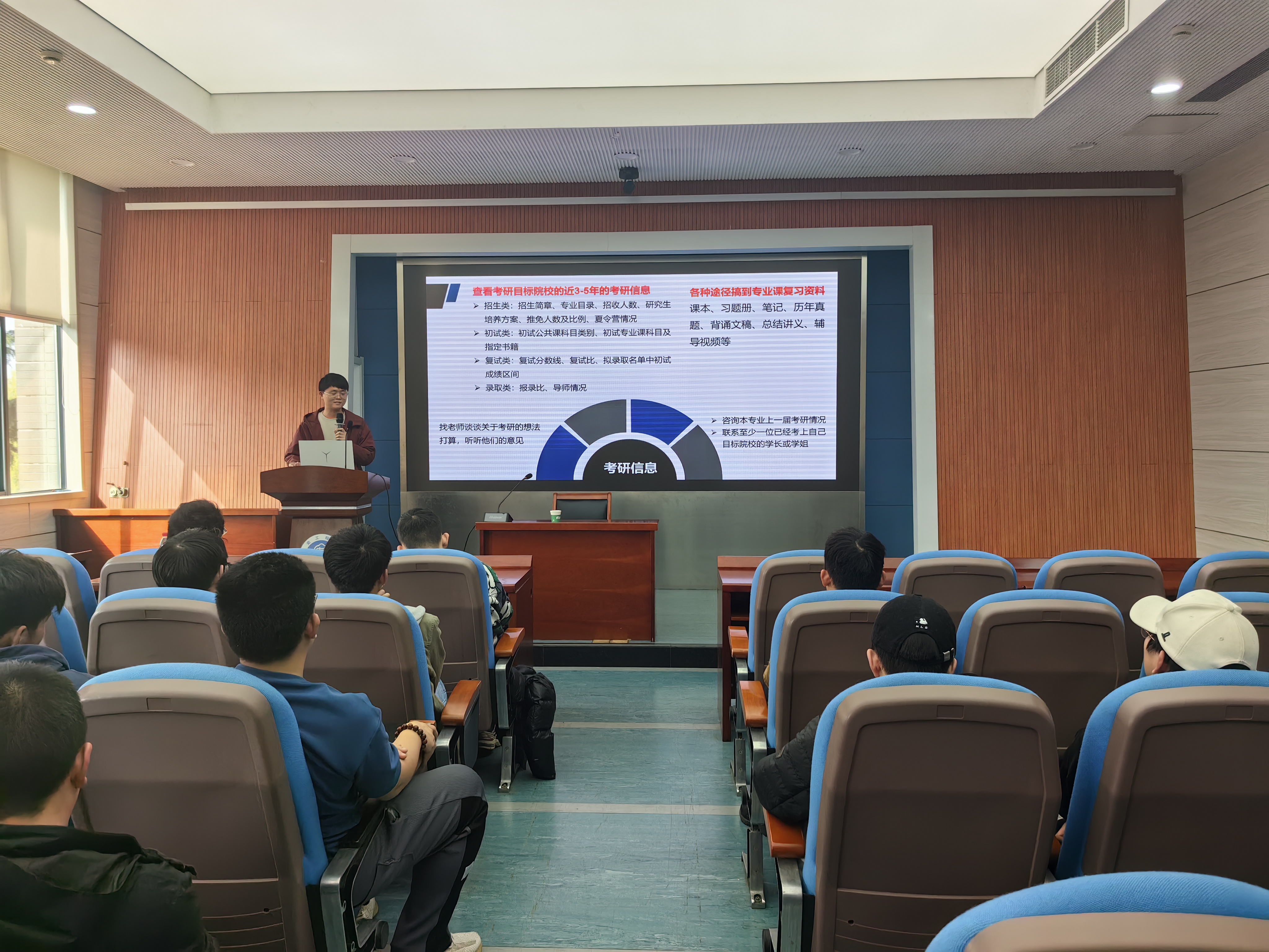 讲座伊始,林柏泉教授解答了同学们对于未来发展上的疑问。对于选择读研的同学,林教授提醒他们要认真选择导师,以获取多渠道的信息和资源,助力个人发展。他还建议同学们提前进入课题组,提升自己的知识获取能力和运用能力,建立自己的知识结构体系,能够运用所学知识解决实际问题。对于选择就业的同学,林教授提醒他们要学会把握机会,选择适合自己发展的行业方向,了解不同企业的基本情况,将所学知识与企业机制相结合,树立自信心,把自己的潜力和优势发挥到最大。最后,林教授更希望同学们能把握好当下,提升各项综合能力,铺好走向未来的道路,掌握终生学习的方法,形成良性循环。随后,魏则宁向同学们分享了详细的考研备考规划,强调获取考研信息的重要性,并分享了实用的备考攻略和建议;施宇通过分享个人经历,鼓励同学们以学业为基,以科研为志,充实本科生活,迈出走向研究生涯的第一步;吴雨辰提醒同学们明确考研的动力,提前了解研究生活,正确面对考研的难度,做好考研时各方面的选择,以充分的准备应对考研。
