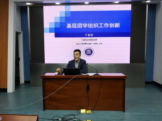 青马班第三次授课于矿科A200开课,学工办主任于基伯老师出席此次活动并担任主讲。