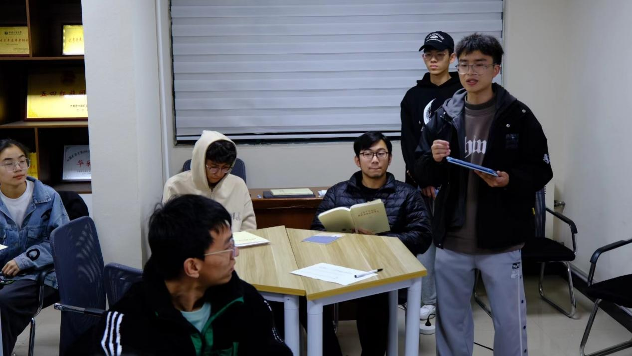 活动开始,许正阳同学对本次活动的主题、内容及活动流程做了简要的介绍。在同学们大致了解活动流程后,布置了阅读任务。首先,同学们以小组为单位阅读了《习近平总书记教育重要论述讲义》,各组都做了读书笔记并进行了激烈的小组讨论。同学们表示,习近平总书记关于教育的重要论述,内涵十分丰富,贯通其中的“四个自信”,对同学们自身的成长教育具有十分重要的意义。小组阅读结束后,知行社为大家播放了《新闻周刊》节目,让同学们在学习书本知识的同时关注时事政治,把握时代动向和社会热点。许正阳同学表示,读书分享活动是新澳门六合彩预测