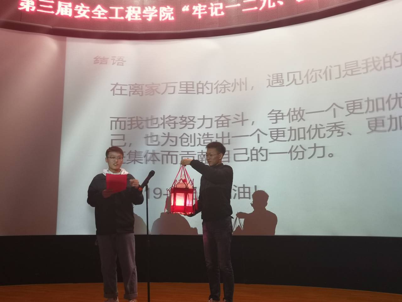 随后于基伯老师对本次活动及近期同学们的学习成绩问题进行了总结,指出国家的不断繁荣发展需要一代又一代人的共同努力,作为大学生,要将对个人理想的追求融入实现中华民族的伟大复兴中,并相信同学们在以后的学习中能够总结经验,吸取教训,在接下来考试中取得理想成绩。最后主持人揭晓评比结果:安全19-3班获得一等奖;安全19-2班、安全19-5班获得二等奖;安全19-1班、安全19-4班、安全19-6班获得三等奖,本次活动在掌声和欢乐声中正式结束。