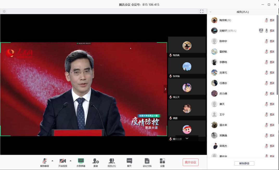 共734名本科生、研究生通过电脑、手机和平板等渠道共同收看了由教育部社会科学司、人民网联合举办的“全国大学生同上一堂疫情防控思政大课”。