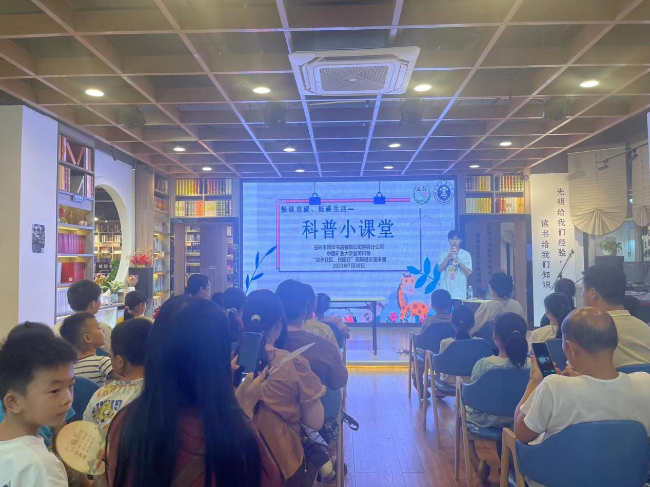 “蓝梦翔三分队”实践团一行在广西玉林市容县容州镇为中小学学生开展双碳科普公益宣讲。实践团成员结合当地传统特色文化及人文风情,结合本学科专业特色,以生动有趣的语言为孩子们讲授如何区分新能源与传统能源,普及氢能、太阳能、可燃冰等新能源对实现双碳目标的重大意义,讲述绿色低碳环保技术领域的相关知识,带领孩子们动手完成电解水科学小实验,同时签订低碳环保协议,鼓励孩子们树立科学环保意识,从生活中的小事做起,以实际行动为实现双碳目标贡献一份力量。领队陆良杰说,“在孩子们的认真、惊喜的眼睛中找到了大学生身上的那份价值体现,我愿意每年都把所学所知分享给家乡的小朋友们”。