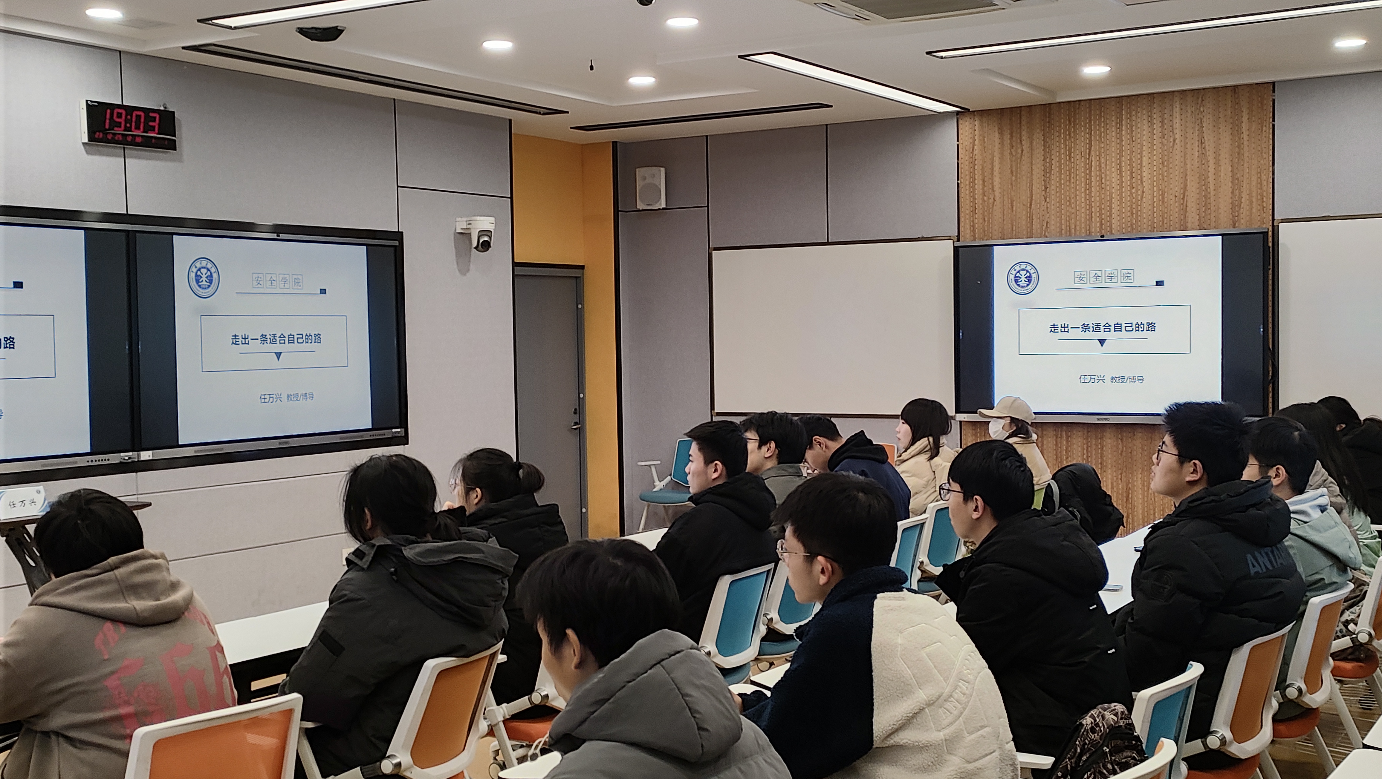 于博五A201开展“走出一条适合自己的路”主题讲座。任万兴教授受邀主讲,职业卫生工程2022级1班行政班主任黄荣廷及全体同学参与本次活动。