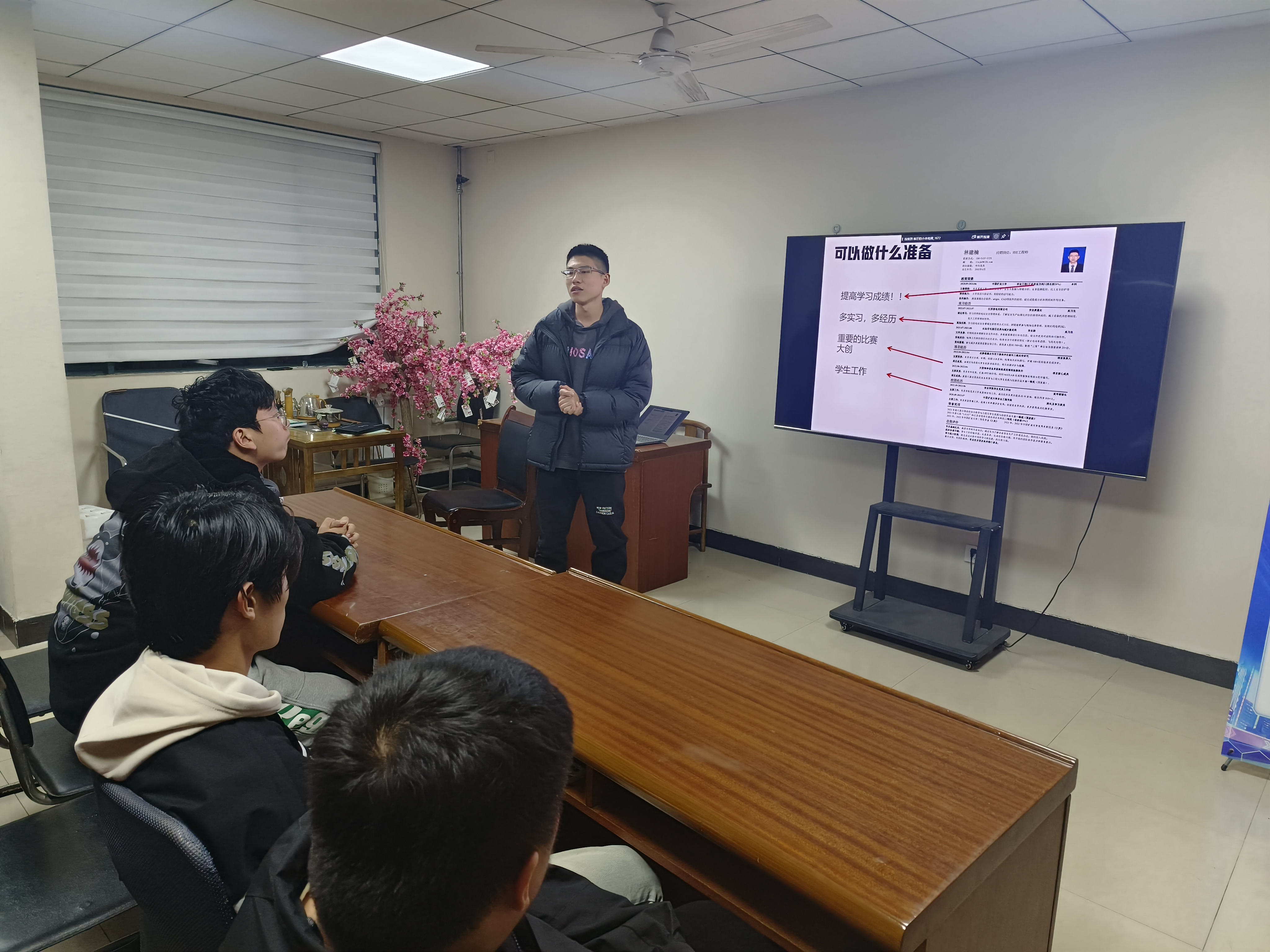 活动伊始,林建楠分享了自己求职经历,介绍了现阶段周围同学的就业去向、薪资待遇水平,结合自己的求职简历对与会同学开展就业指导。林建楠表示无论是升学还是就业,学习成绩都是比较重要的,大二阶段还是要注重专业知识的学习,如果准备在本科毕业后就业的需要提前做好规划,积极参加学生工作提升自己的综合能力,利用好自己的寒假暑假提早开展专业实习,丰富自己的求职履历。程禹杭强调了本科期间的主要任务是学习,大二现阶段尚未接触专业课,应把握基础课的学习和钻研,在保证自身的成绩稳定的前提下全面拓展能力。程禹杭鼓励同学们要在闲暇之余投身学生工作以培养交流能力,参加科研项目以提升创新才能,保持兴趣多维拓展,或进修多门学科,转换思维以保持学习热情。