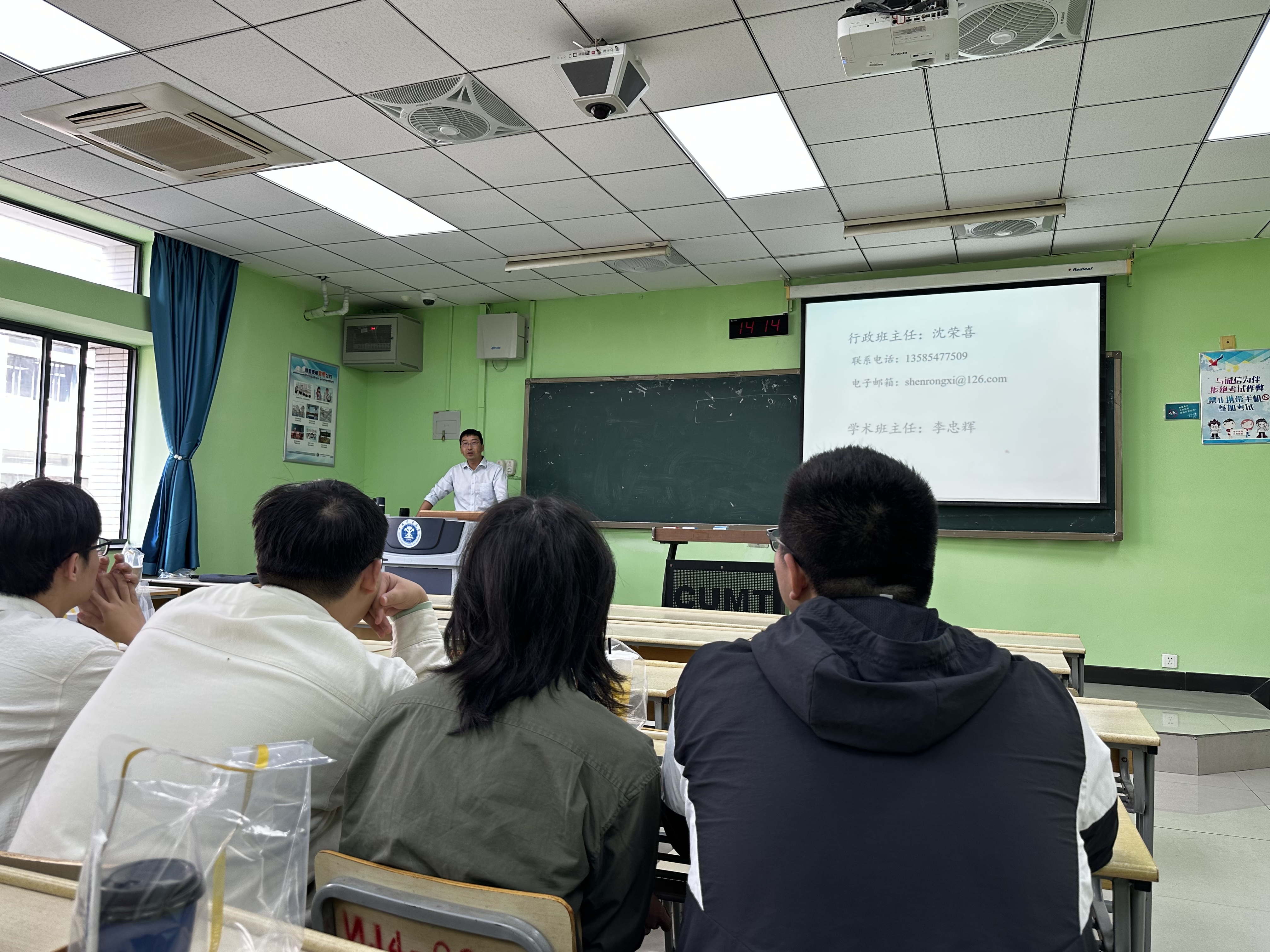 班主任沈荣喜老师讲述了应急管理方向的课程设置及以后可能的就业方向。接着沈老师从培养良好的学习作风、生活习惯、班级团结与共同发展等方面提出了建议和期望,希望大家认真学习专业知识,提升自己综合素质能力。沈老师也希望同学们团结向上,积极参与团建活动,增强集体意识,打造成学习佳、环境优、氛围好的班集体,在整个年级中脱颖而出。讲座最后,沈老师就同学们提出的各种问题进行细致回答。