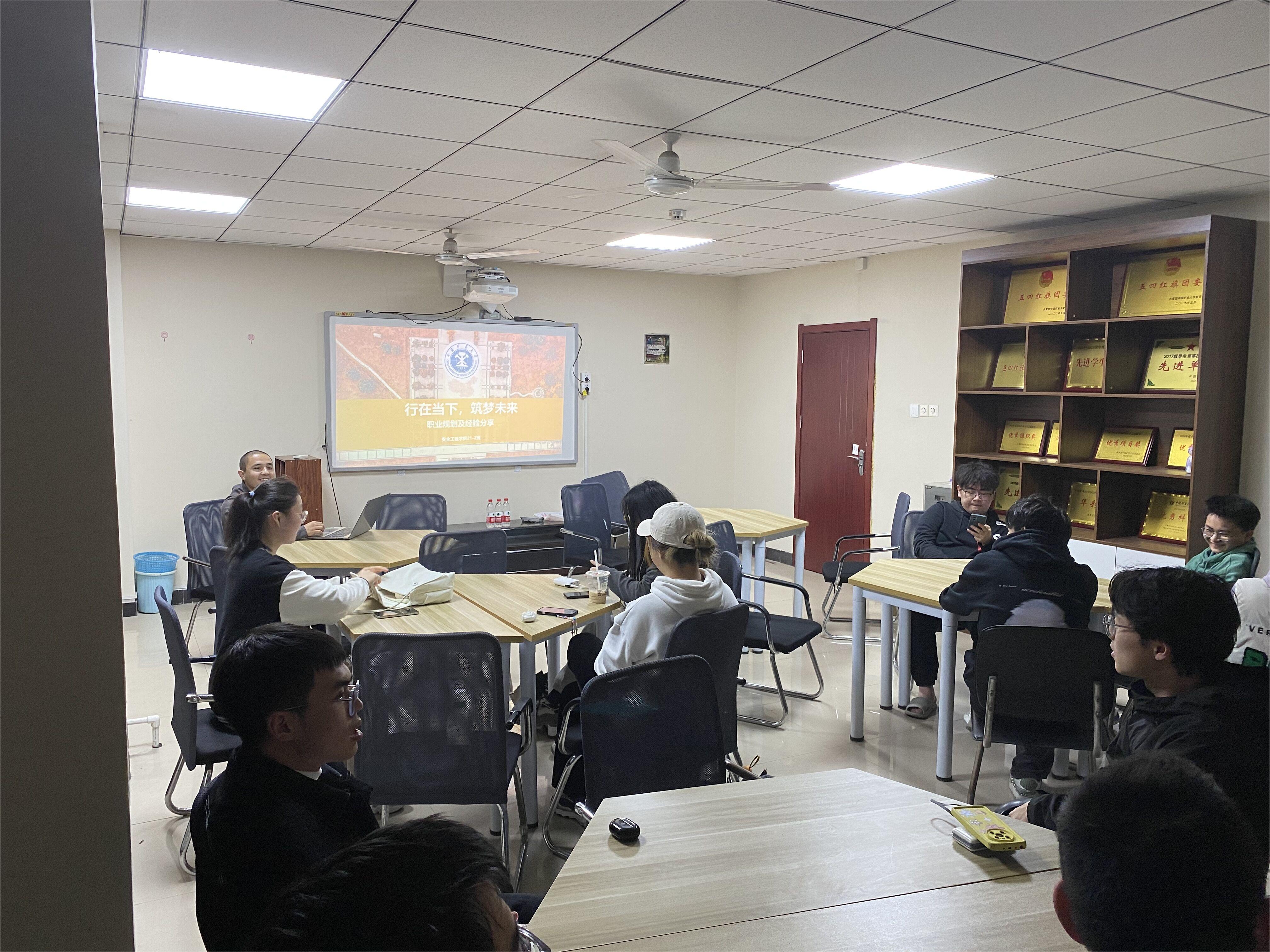 安全21-1班学术班主任林柏泉教授受邀主讲,为同学们解决了未来生涯规划上所遇到的疑问,行政班主任徐吉钊副教授对班级上学期取得的成绩进行了总结;安全21-2班长阿卜力孜与同学们进行了深度交流,提醒大家要对当下的就业形势有清楚的认识,及早做好计划;安全21-3班对班内人员未来选择考研、保研及就业意向进行调查,本次活动为同学们提供了更具针对性的指导和帮助;安全21-4班在班长陈思睿的带领下,大家讨论了考研、保研以及当前就业形势,分享了自己的见解与看法;安全21级国际班学术班主任王亮教授、行政班主任张开仲副教授受邀出席并进行现场指导,帮助同学们对自己的未来发展有了更加清晰的认识;消防21-1班班主任何路老师对同学们之后的备考生活提出了殷切期望,鼓励大家要继续保持拼搏奋斗、坚持到底;职业卫生工程21-1班开展职业生涯主题班会,帮助同学们明晰了未来的道路,为以后的发展提供了不同的选择,也教会了同学们“人生的路,每一步都算数”的道理。