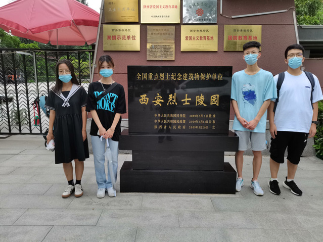 在陕西省西安市烈士陵园里,篆刻在入口的题词“为人民而死,虽死犹生”让成员们感受颇深。成员们带着庄重的心端详了烈士英名录,并在曹力如、林斌丞等烈士的墓前低头鞠躬与默哀,以表对先烈们的缅怀和敬意。驻足于烈士纪念馆外,墙面上赭红色的英雄浮雕烘托出的浑厚、肃穆和凝重的气氛,令成员们为之震撼与仰望。因积极配合当地防疫措施,实践团未能进入烈士纪念馆内部参观,但成员们后续积极通过其他渠道了解纪念馆及烈士信息,为本次实践画上了圆满的句点。