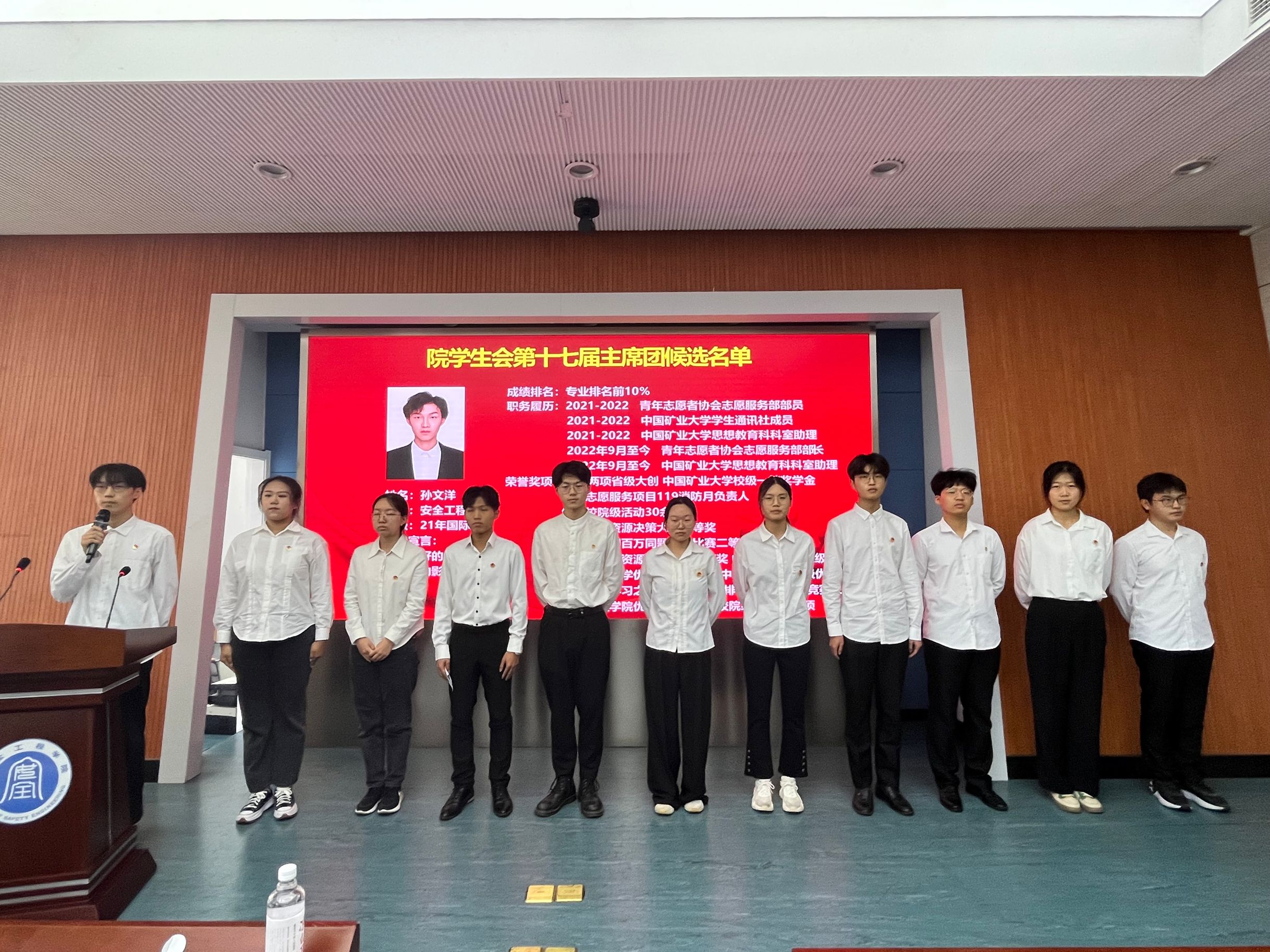 于矿业科学中心A200召开第十七届学生代表大会、研究生代表大会。团委书记郭佳、辅导员胥振、赵厚宽、林琳、花春雨以及各年级的学生代表参加本次大会。
