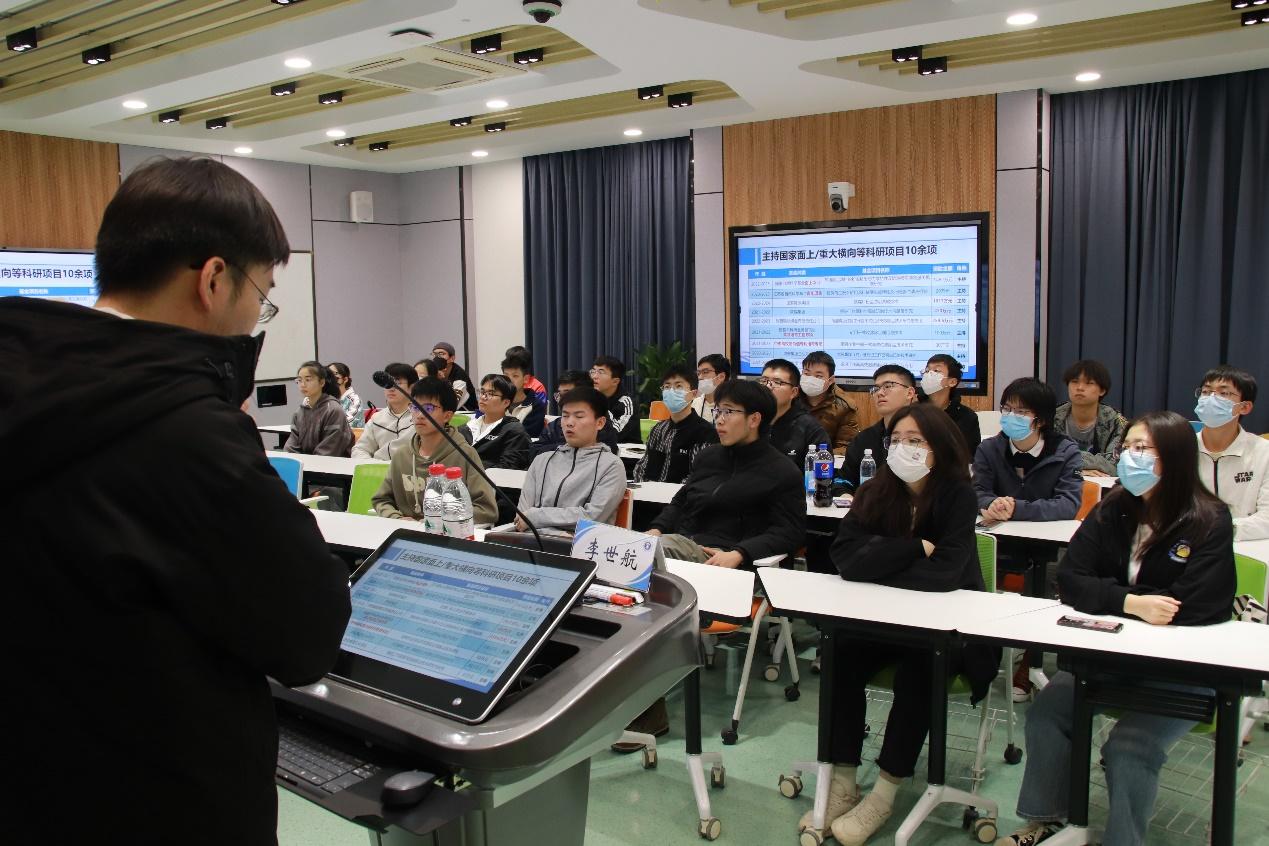 活动伊始,李世航老师结合自身求学与教学经验缓解了同学们当下的疑惑和未来的迷茫,为同学们带来了诸多启发与收获。李世航老师首先总结了自己学习工作历程中的成功经验,接着给同学们介绍了大学生创业项目的流程,鼓励同学们积极与老师交流、寻找机会、提前接触科研环境。李世航老师还为如何参加科技竞赛做了详细介绍。活动最后,同学们踊跃提出问题,李老师一一耐心解答。