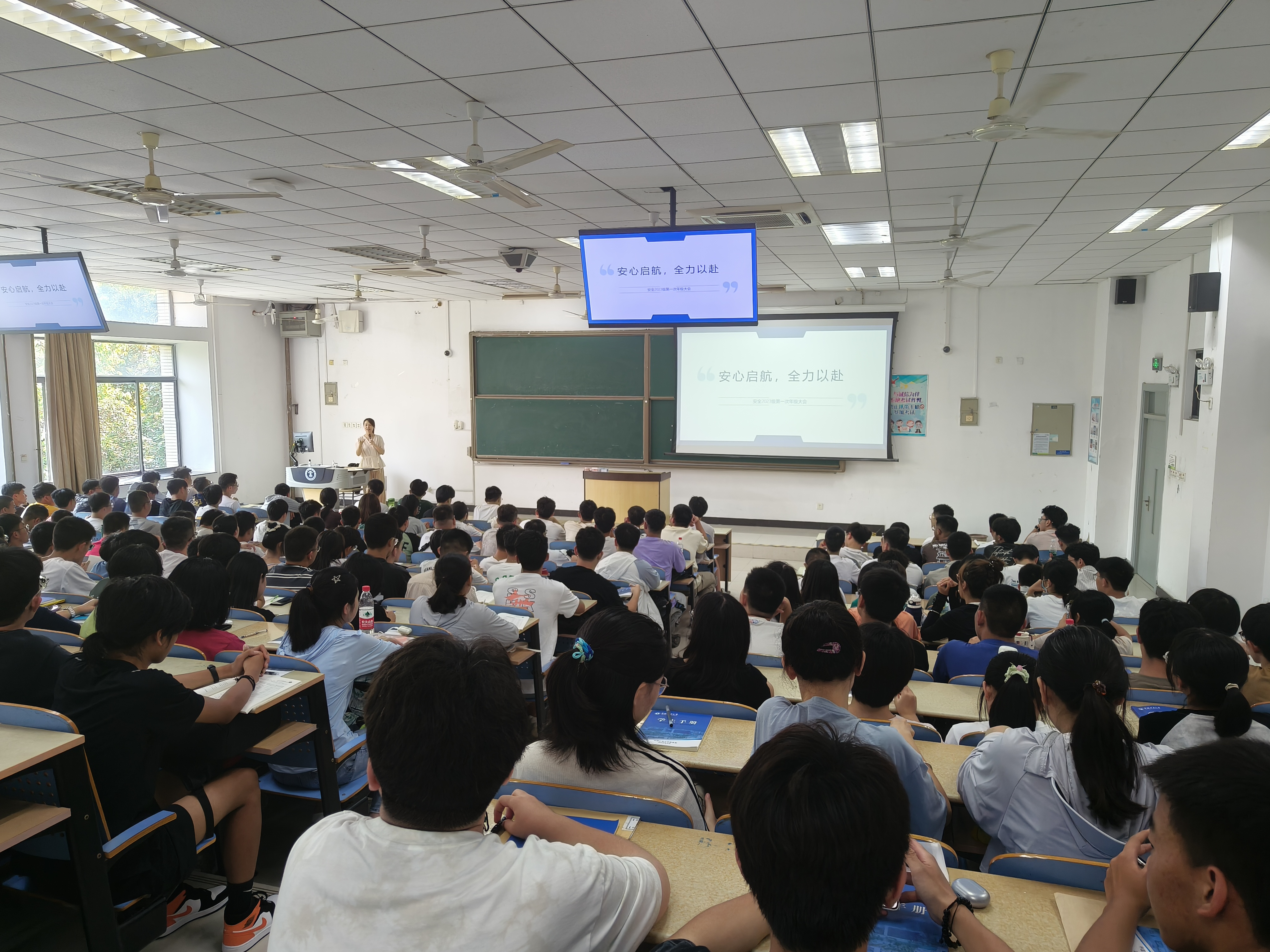2023级在博一C204召开以“安心启航,全力以赴”为主题的年级大会。会议由2023级辅导员郭佳主持,兼职辅导员董映仪和2023级全体本科生参加了本次会议。