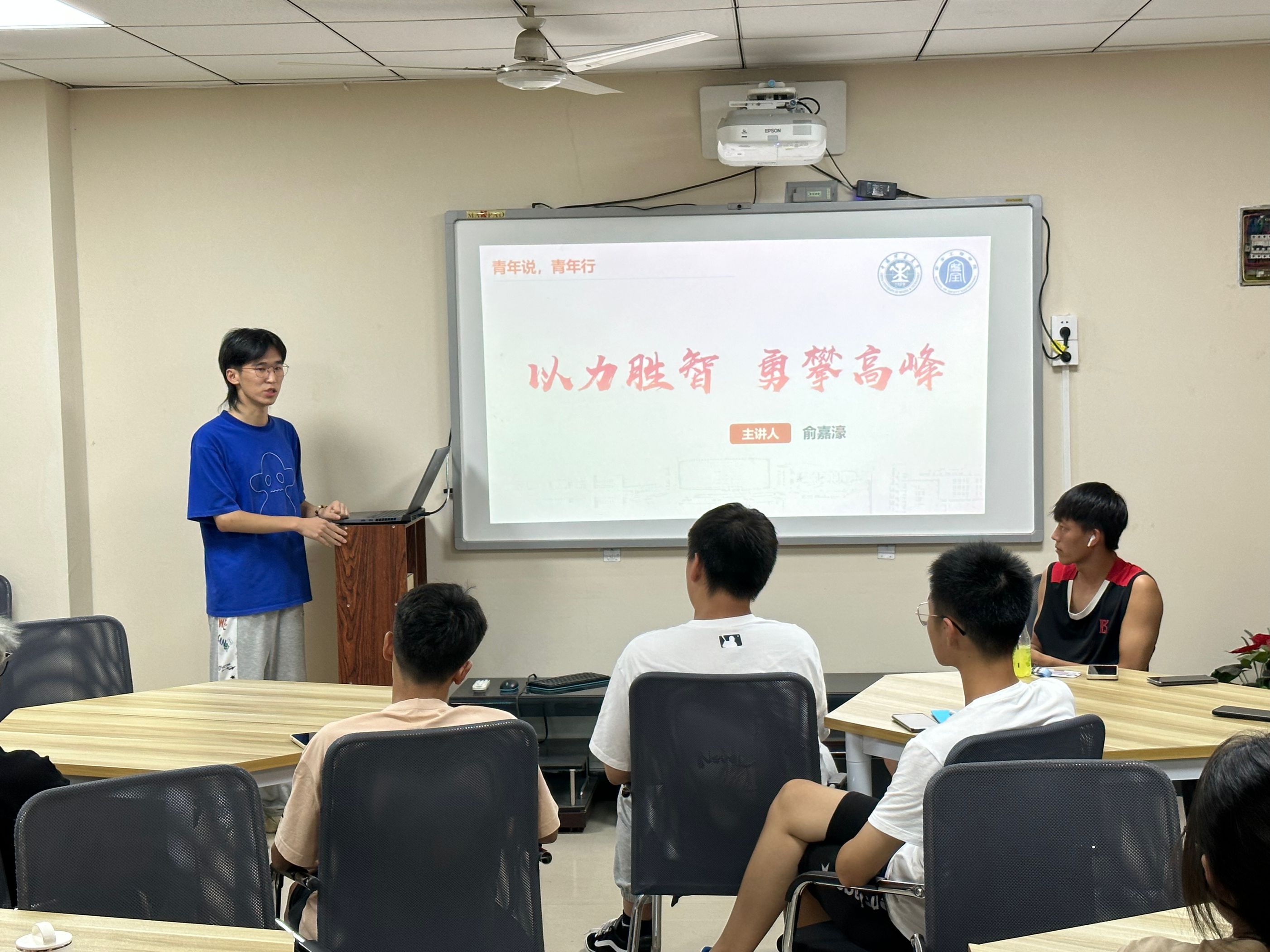 学生党员工作站、本科生第一党支部于梅三力行轩围绕“以力胜智,勇攀高峰”主题展开“青年说,青年行”主题讲座。21级优秀同学俞嘉濠受邀主讲,2023级6班全体同学参加此次活动。