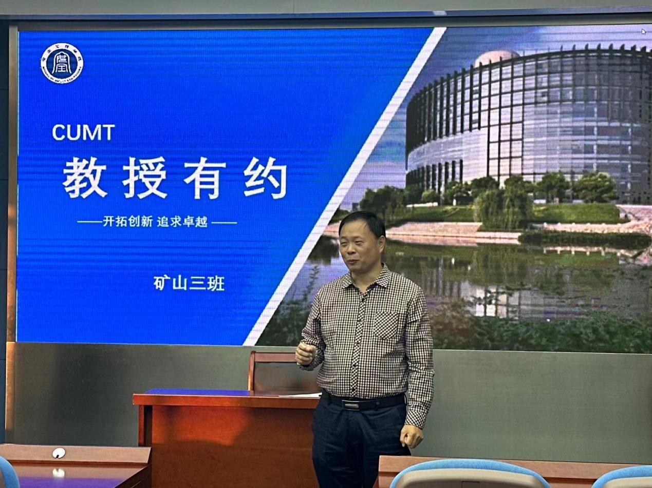 于矿业科学中心A200开展第九十七期“教授有约”活动,李庆钊教授受邀主讲,2022级3班全体同学参加本次活动,行政班主任邵振鲁副教授主持本次活动。