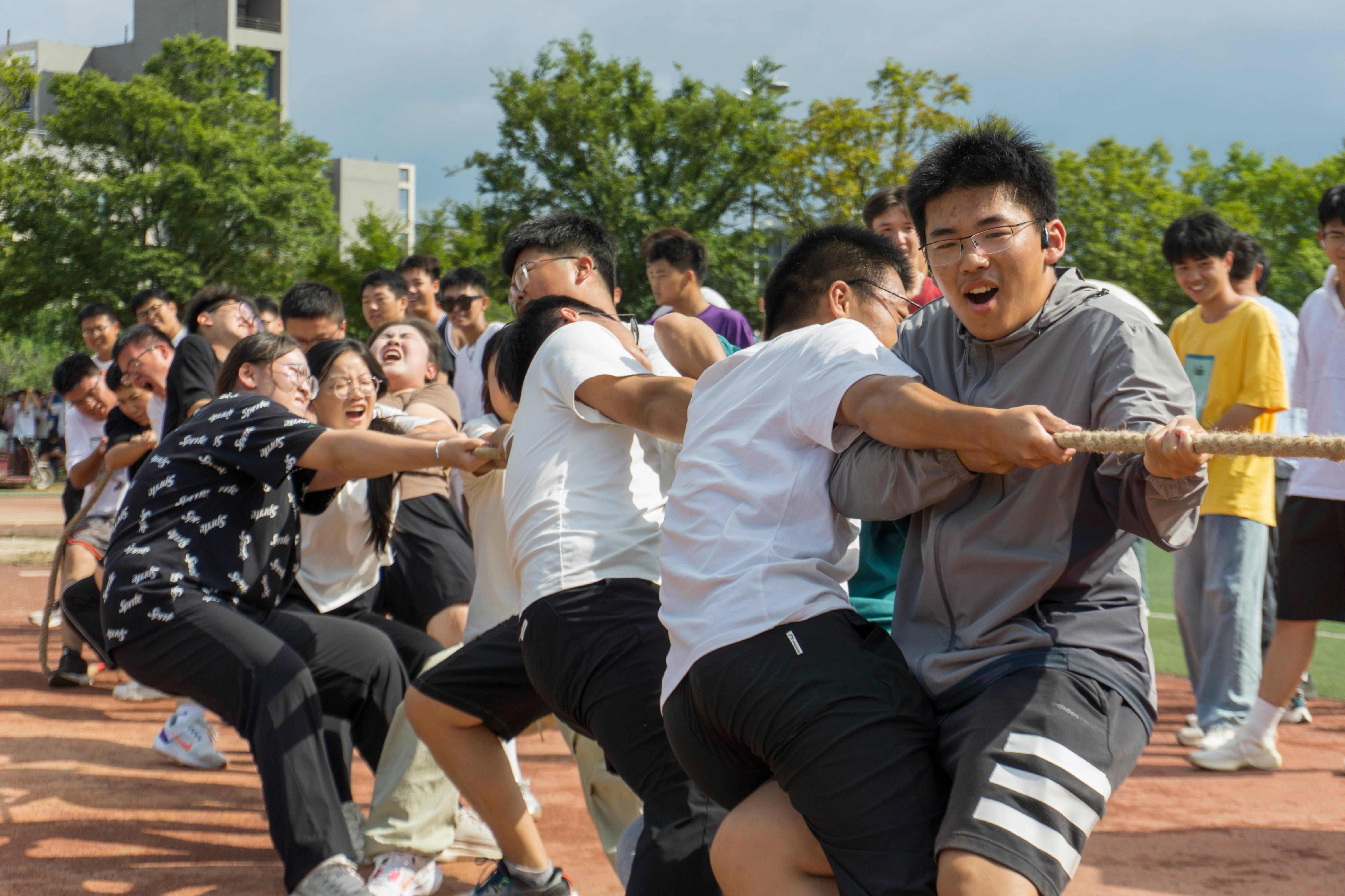 团委学生会在三运田径场举办了以“团结拼搏,共创辉煌”为主题的新生拔河比赛。此次活动旨在增强团队凝聚力和合作意识,提高同学们的身体素质,并增进班级之间的沟通与交流。