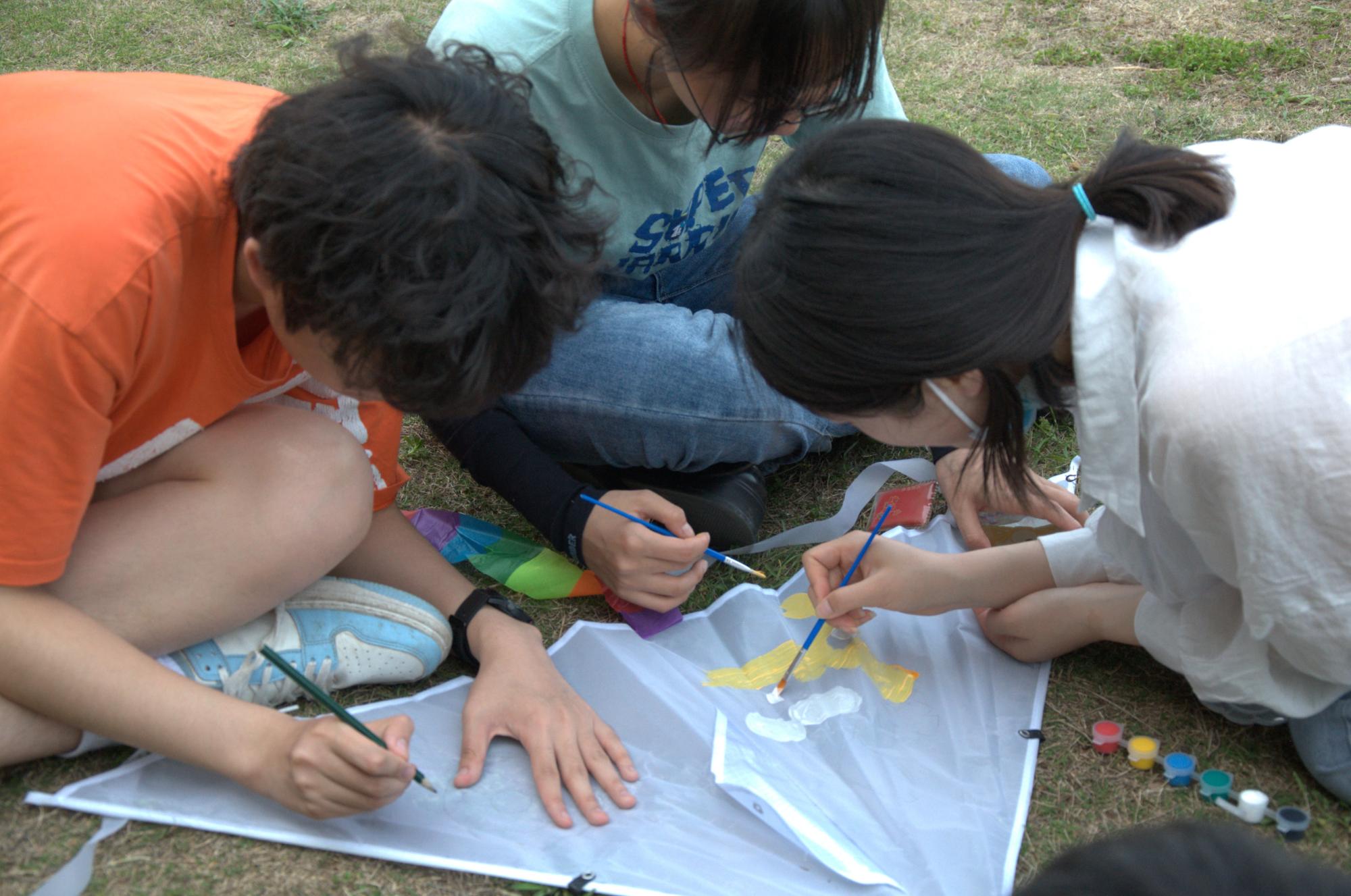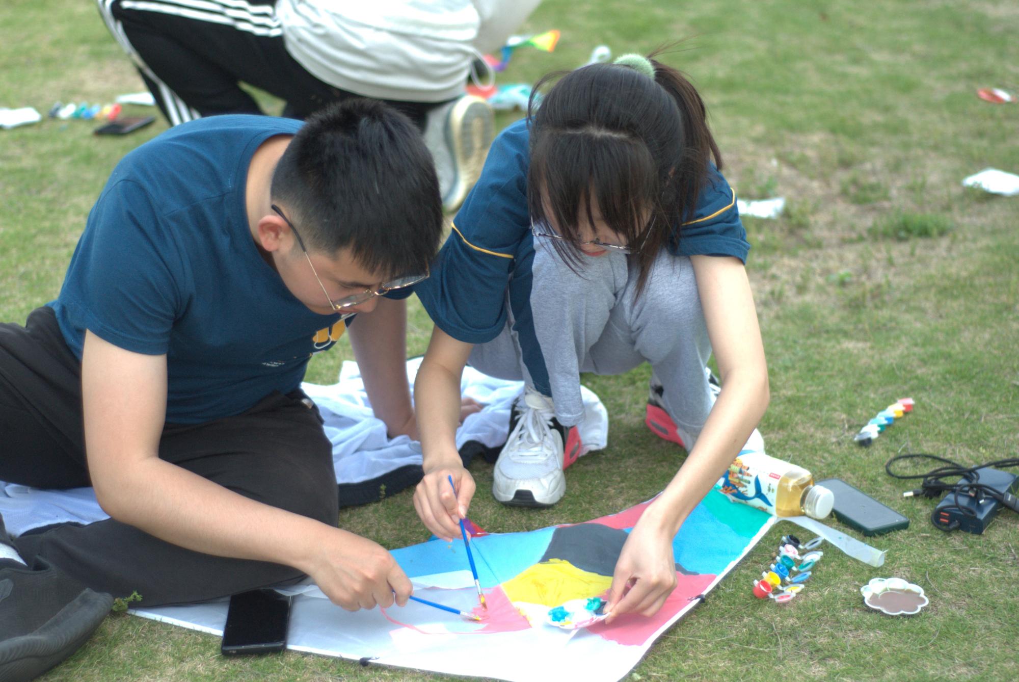 本次活动分为创意彩绘风筝DIY和放风筝技能比赛两个部分,创意彩绘风筝DIY是在原有的风筝上绘画,同学们充分发挥想象力与创造力,一笔一划将心中的色彩与想象跃然风筝之上。经过一个小时的绘制,一只只五彩斑斓的风筝制作完成,同学们带着满满的欣喜和自豪,畅谈作品寓意与所感所悟,用独特的方式感悟传统文化的魅力与乐趣。随后,同学们在春风中放飞自己的风筝,万紫千红的风筝在空中飘动,与蓝天白云构成了一副缤纷的绘画。同学们在广阔的草坪上,拉扯着线绳努力地让自己心爱的风筝飞得更高、更远。在这个渐渐入夏的时节,风筝飘扬在空中,让人感受到了轻松和自由的气息。