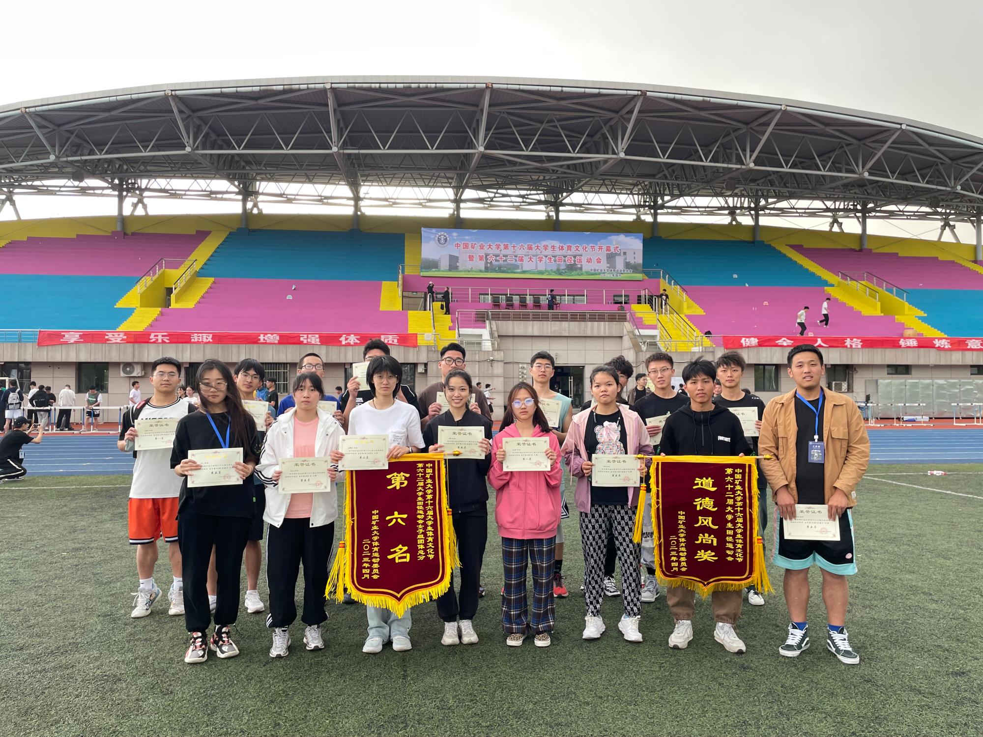 最终取得了女子团体第六名的优秀成绩,其中武昕宇同学获得女子3000米第二名和5000米第一名,唐天瑶同学获得女子1500米决赛第一名,邸刘阳同学获得女子400米第一名和女子200米第二名,杜锦玥同学获得女子100米栏第二名和女子三级跳第四名,张宝玉同学获得女子组5000米第五名,范卓颖同学获得女子3000米第八名,武昕宇、陈榆、李影、郑言获女子组4×100米接力第五名。男子比赛中,殷实同学获得男子400米比赛第五名,毕任飞同学获得男子铅球比赛第二名,马瑞良同学获得男子铅球比赛第五名,吴宇航同学获得男子标枪比赛第六名,吴奕捷、李程赟、李佳灏 靳飞宇获得男子组4×100米接力第八名。