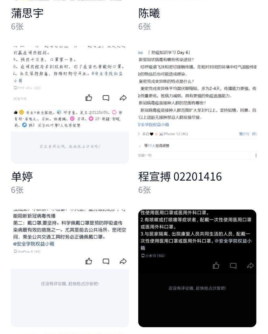 同学翻阅相关资料防疫知识,动人的防疫故事,伟大的防疫英雄,并向大家分享自己的防疫妙招,将自己搜集的防疫知识发到个人社交网站中,每日坚持更新内容,努力做到知识的丰富、权威,与安全新澳门六合彩预测