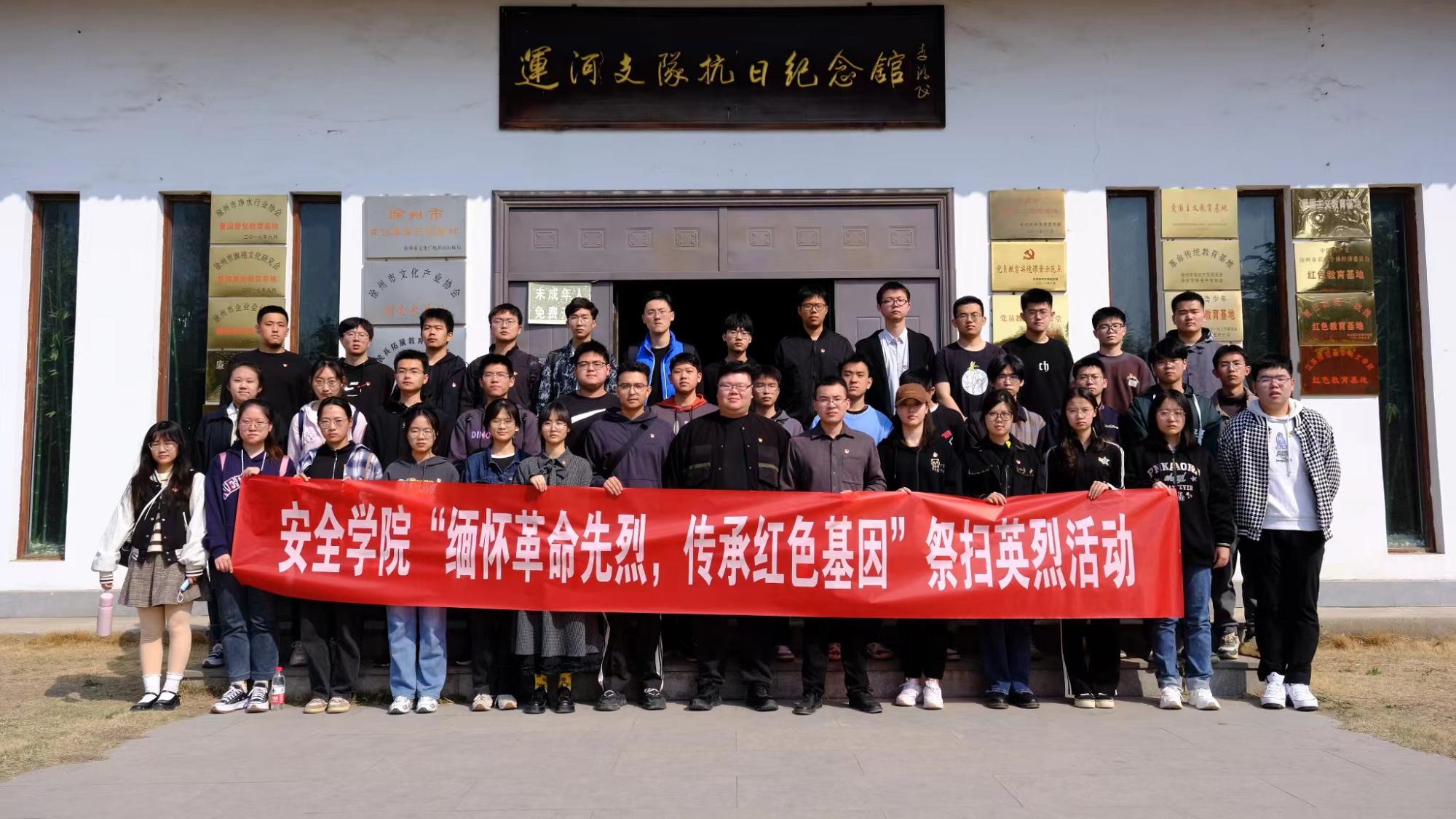 学生党员工作站开展“缅怀革命先烈,传承红色基因”祭扫英烈教育实践活动。辅导员刘世通、胥振、林琳、艾克以及学生党员代表、学生骨干代表共计44人前往徐州市贾汪区红色爱国主义教育基地参观徐州会战纪念馆、运河支队抗日纪念馆,通过追寻革命先辈的足迹,缅怀革命先烈,重温党的光辉历史,接受党性和革命传统教育,牢记初心使命,传承革命精神。