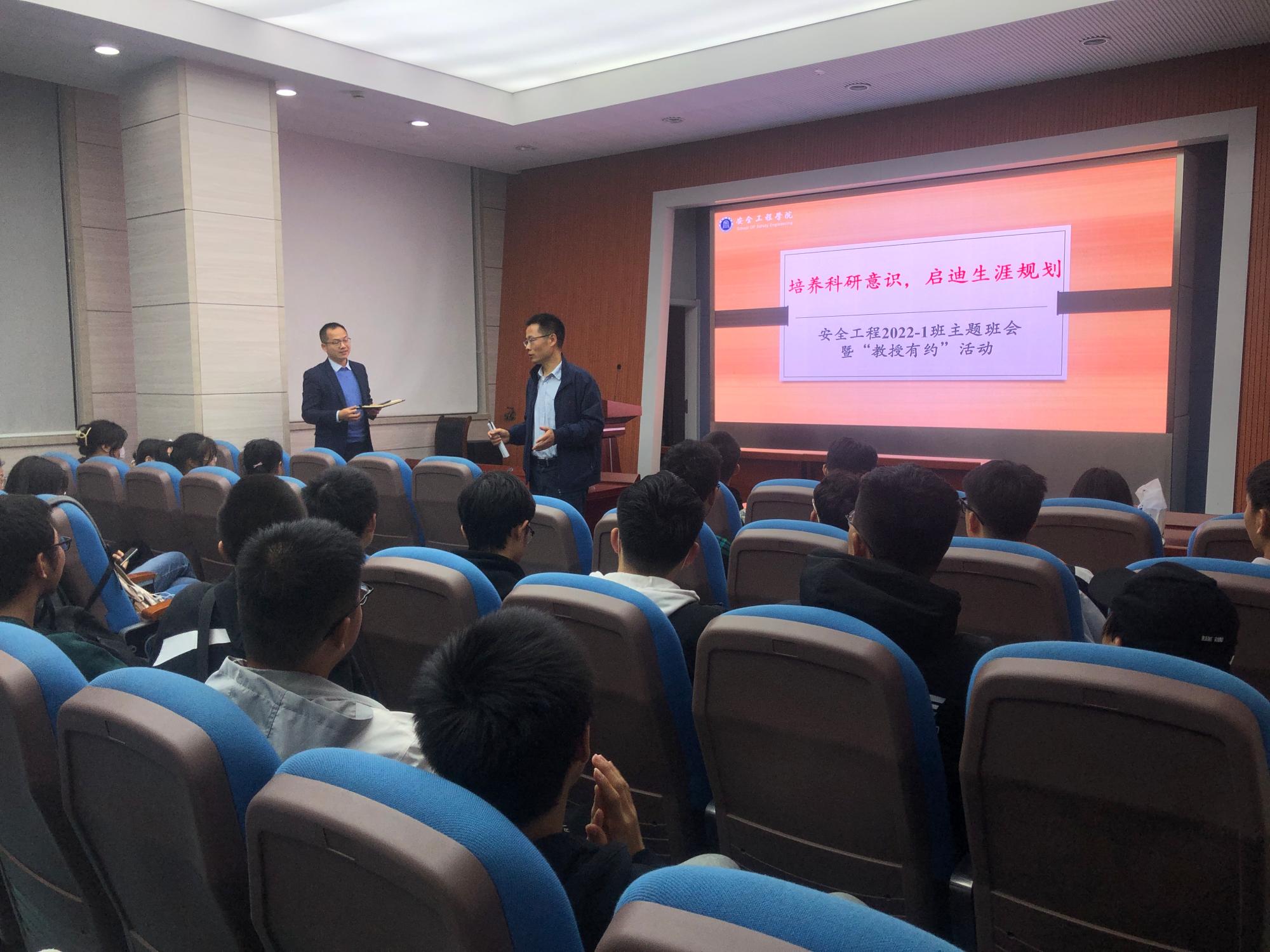 于矿业科学中心A200开展“培养科研意识,启迪生涯规划”教授有约活动。翟成教授受邀担任本次教授有约活动主讲,行政班主任邵振鲁老师及2022级1班全体同学参加本次活动。