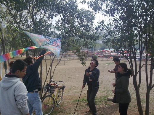 上午8点,服务分队D组成员在我校图书馆门口集合。随后,大家步行至小南湖。队员们纷纷行动起来在附近寻找那些挂在树上的风筝,帮助风筝主人把风筝摘下来。挂在树上的风筝被服务分队成员们机灵敏捷地取下后又重新返回天空,尽情翱翔。风筝的主人们十分感谢服务分队的成员们,并与队员们合影留念。