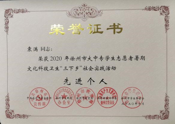 创新创业中心学习部部长,并获得了2019-2020学年校级优秀共青团员、校级优秀学生干部、校级优秀教学信息员、校级服务先进个人、徐州市救助管理站优秀志愿者、“优秀部长”荣誉。