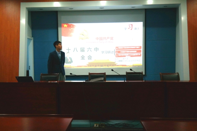 于矿业科学中心学术报告厅A200召开了十八届六中全会学习研讨会。本次会议由13本科生党支部书记沈一丁主持,13级本科生党支部全体党员、本科团学组织干部及各班班长、团支书和主要团员代表均参加了此次会议。