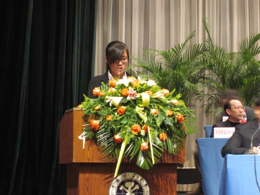 研究生王庆国作为学生代表登台发言,在发言中,他向大家介绍课题组的情况并与大家分享了课题组获奖的经验。