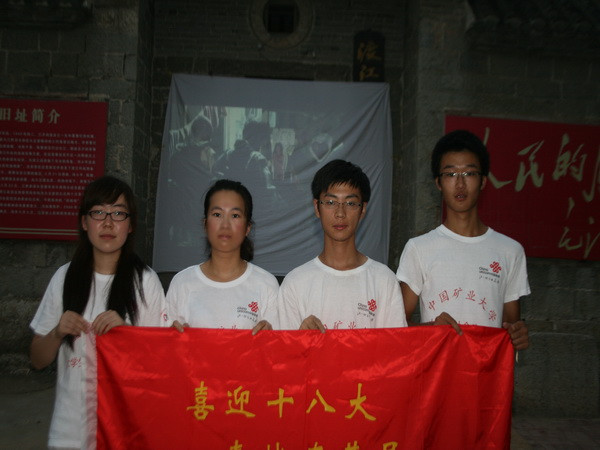 组织青年党员开展‘优秀电影三下乡’活动,在渡江战役总前委旧址这一满含红色气息的地点为农村群众播放爱国电影,既丰富了农民群众的精神生活,又体现了矿大学子为迎接党的十八大的召开献上的一份文化厚礼。”