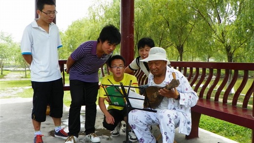 当日上午,实践团来到安徽省淮北市南湖湿地公园,经过淮北市政府和杨庄煤矿双方的共同建设,这里俨然已经成为一片绿色湖泊,作为观光旅游的好去处,给周围的居民带来绿色自然的享受。南湖湿地公园内湖泊的水质为三级奥运供水水质,被淮北市用作备用饮用水水源。实践团成员们和这里的游客亲切交谈,共享湖光美色。