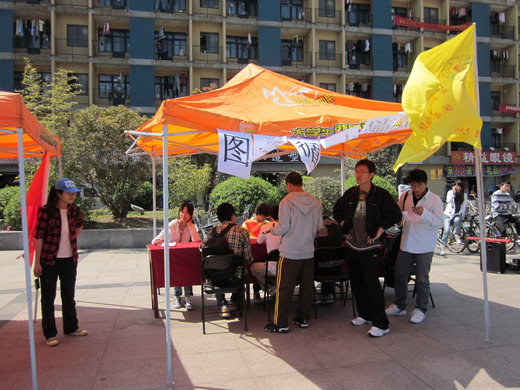 的同学一起在二食堂广场摆好宣传板、桌凳等。本活动主要针对教材的循环利用,与图书馆相比,最大特色是可以做到一次借阅一整套教材,直到使用完毕,最长借期可达一个学期。此次活动吸引了全校同学的积极参与,将自己或宿舍同学闲置的图书捐赠出来,使图书资源得到了充分利用,现场气氛十分热烈。新澳门六合彩预测