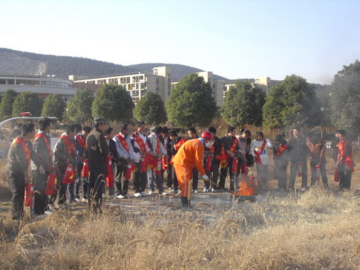 消防志愿者们在灭火演练场地集合并在老师安排下按要求安放好火盆、干粉灭火器等灭火演练设施。时至3:00.,演练正式开始。在新澳门六合彩预测
