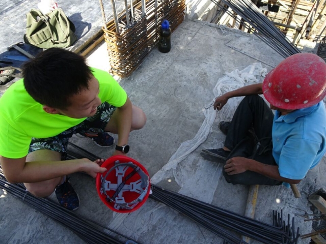 今天我们发现了一群不一样的工种,他们做的是测绘的工作,利用先进的红外线技术测绘距离,为其他工种提供帮助。在与一位测绘工人的交流中,我们了解到,他今年23岁,出来工作已经有好几年了,他说,他们做这样的工作基本上没时间找媳妇结婚,他们这样的年轻出来的都是在外到二十七八岁再回家取媳妇,我们从他口中也了解到,这几年他们的工作环境的确有很大变化,但是依旧的恶劣,但是没有办法,这就是工作,我们团员们也深切的体会到了工人的辛苦。