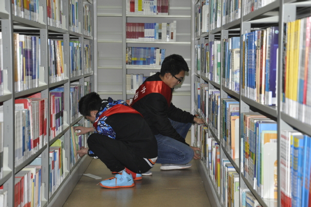 领队的要求:志愿者应在活动中保持安静,不可以打扰图书馆中的读者,必须认真按照工作人员的要求整理图书,打扫卫生,做到精益求精。本次活动的内容主要是整理图书,将图书整齐摆放并正确分类。活动中安全17-3班同学在进行分区安排之后,每人拿了一个夹书板,随后到各自负责书架去整理书籍。将没有放到书架上的书放回书架,再用夹书板将书籍挤压整齐。除此之外,他们还给同学们的打扫了图书馆的每一个角落。