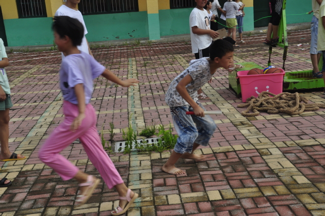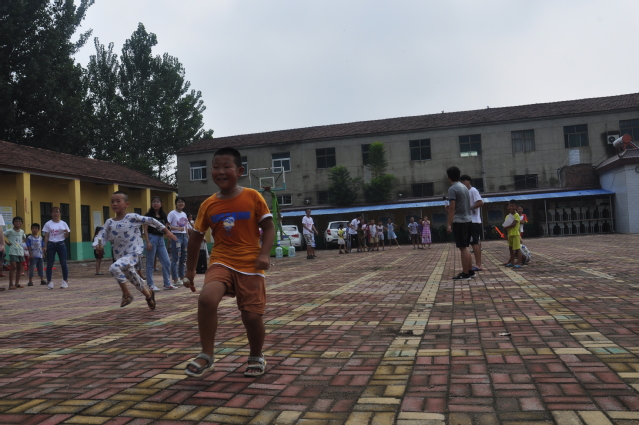 “仲夏希望”支教团在安徽省萧县陶楼小学的趣味运动会上举办了一场接力比赛。