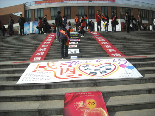 11月25号中午12点半,由我校学生工作处和大学生服务总队联合主办的首届感恩文化节在二食堂广场拉开帷幕。新澳门六合彩预测