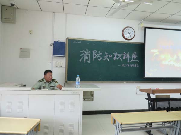 下午3点整,消防中队队长李亚来到教四C206,消防知识讲座正式开始。首先,由主持人鲁守正为大家简单介绍这次讲座的内容和主题,同时介绍本次的演讲者并为大家请上本次的演讲者李亚队长。李队长从火灾类型、火灾处理、火灾中的逃生方法和火灾防范措施等方面给大家做了详细的讲解。特别是在说到火灾处理和遇到火灾如何逃生时,他告诉同学们遇到火灾后要首先判断火势大小,若较小须按照正确方法及时扑救,若较大则马上报警,准确告诉消防官兵火灾地点和火势大小;若遇火灾被困,首先必须保持镇静,准确判断方向的同时做好简易防范措施,用湿毛巾护住口鼻,靠墙边移动到安全的地方,冷静等待救援。李队长指出,若到了迫不得已跳楼求生的时候,一定要使用恰当的方法,例如使用窗帘或者衣服等减少下落的高度等,抑或是找准跳楼的位置将伤害降至最低。最后,主持人宣布本次活动圆满结束,大家以热烈的掌声向在百忙之中抽出时间为大家做本次消防知识讲座的李队长致以最诚挚的感谢。