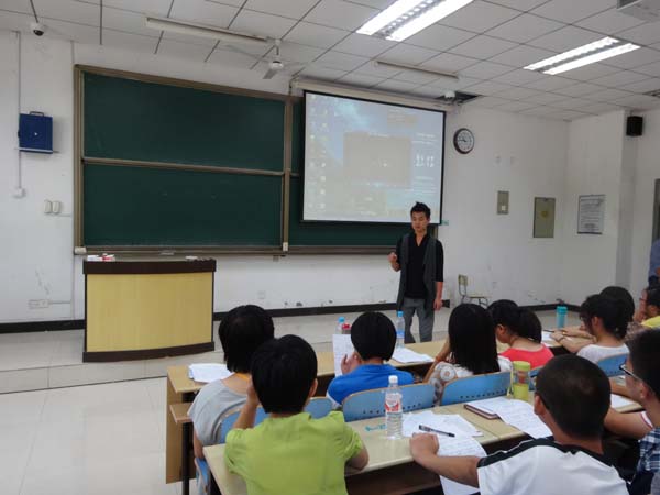 老师给新生教唱。教唱老师由最基本的发声开始,一步一步的带领着同学们学习歌曲;从示范到领唱,耐心地一点点地教给大家最正确的唱法,并嘱咐大家:唱红歌时一定要唱出感情、唱出精神,只有认真体会歌曲其中的精神,演唱才能更上一台阶。教唱结束后,杨洋老师对此次红歌学唱活动做了总结发言。他首先对同学们今天在学习中的努力表示肯定,同时他希望同学们能够真正用心去唱去感受,用自己的歌声去感染收有人。