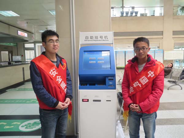 服务分队付艳晴、周汉卿、陈乐三人乘车来到市四院,进行本次的志愿服务活动。在此之前,分队人员已和市四院关部门取得联系,市四院门户组人员泰娩娩、陈雪静热情接待了付艳晴等三人,并介绍服务分队本日的工作安排。在分队人员了解到工作内容后,马上进入到岗位上,开展志愿服务活动。今日的志愿者主要工作是接待应用自助挂号机的病属人员,教学不会用自助挂号机的咨询者提供技术支持。新澳门六合彩预测