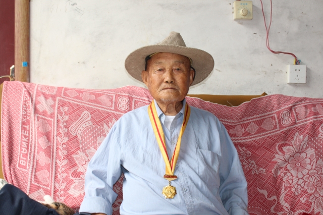 孟昭明老前辈于1942年入伍,加入了第三区联合会。老前辈说当时抗战时期,他们发动群众打倒日本帝国主义,日本人被打的不敢下乡了。用的都是湖北条子、套筒子啊,都是孬枪。孟昭明老前辈获得了70周年颁发的纪念勋章。