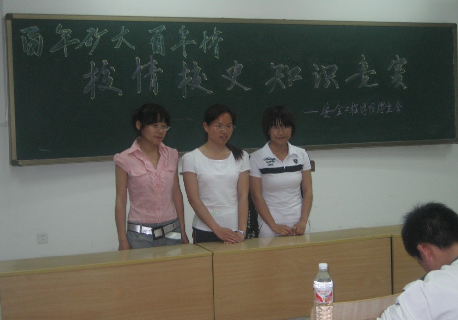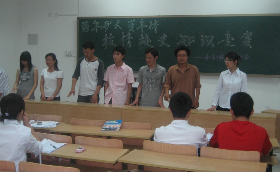 学生会主办的以“百年矿大百年情”为主题的“校情校史知识竞赛”在教5B406准时展开。