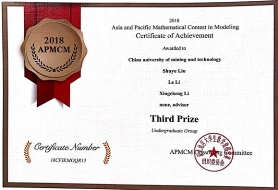大学期间成绩优异,获校基础课学习之星。一次性通过英语四六级、取得雅思6.5分,计算机三级等考试。参与数学建模学科竞赛,取得第16届五一数学建模竞赛一等奖、2018年亚太数学建模竞赛本科组三等奖等。