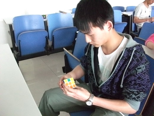 比赛中,选手们各显其能,小小的魔方在他们手中不停地旋转。原本杂乱的魔方不一会儿就已经成型,观众目不转睛的观看,不时发出声声赞叹。更有选手表演了看家本领――单手还原魔方,迎来掌声阵阵。本次比赛吸引来了魔方协会全体成员的参与,协会会长更是取得了22秒的最好成绩。