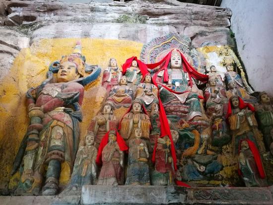 部分成员前往潼南马龙山景区参观学习。据悉,马龙山在潼南至大足公路段的卧佛镇,存有一处我国唯一的年代最晚、规模最大的摩岩造像群。