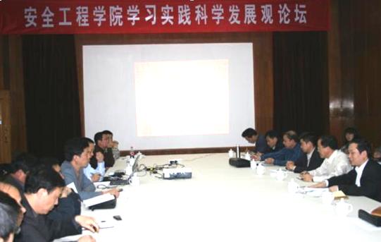 深入学习实践科学发展观活动教师论坛在中国矿业大学外招3号楼第一会议室举行,主题是结合学习实践科学发展观活动第一阶段的学习调研情况,围绕安全学科拓展和教师发展定位等重要问题,发动全院教师集思广益,共商学科发展良策。全院教职工和煤矿瓦斯治理国家工程研究中心教职工一起参加了论坛,并有18位教师在会上踊跃发言。
